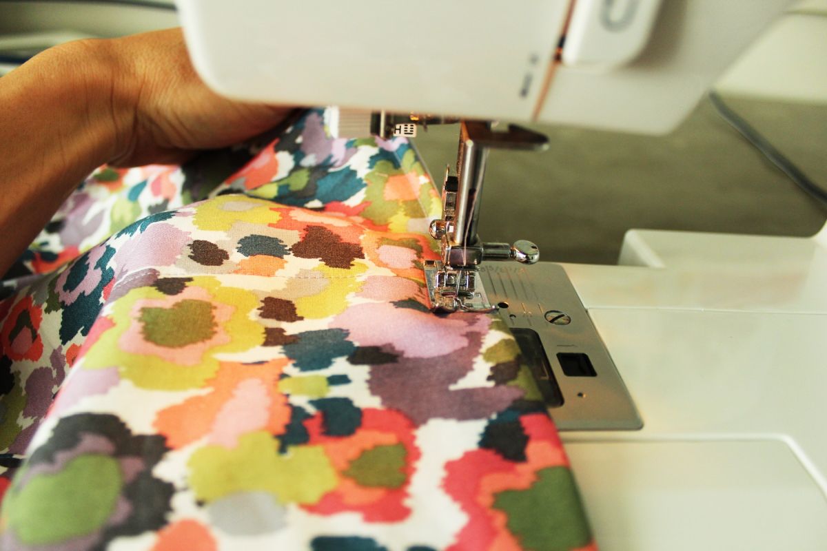 I promise that, when you start sewing, you’re going to want to line up the edges. But if you’ve pinned them correctly, you can trust the pins rather than the mismatched edges. (This method is meant to be a time-saver for people who don’t like to measure and cut and trim and all that. If you find that it stresses you out, however, you can trim the edges to align with each other before sewing. Whatever brings you summertime joy.)